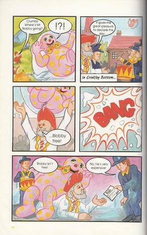 Mr Blobby's Hidden History Activity Book was published in 1994. It features puzzles and puns referring to various historical figures and a few other less credible ones, such as Blobbin Hood!
