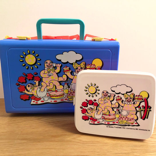 There were plenty of Mr Blobby lunchboxes to take with you on a picnic back in the 90s. They were produced by Vogue Housewares Ltd., Berkshire, who also made flasks and mini snack boxes.