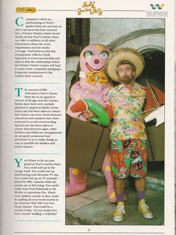 'Noel's Garden Party' was an annual event, bringing Noel's House Party and Crinkley Bottom to life. The 1993 Garden Party took place at Haydock and Doncaster Racecourse for two weekends in August.